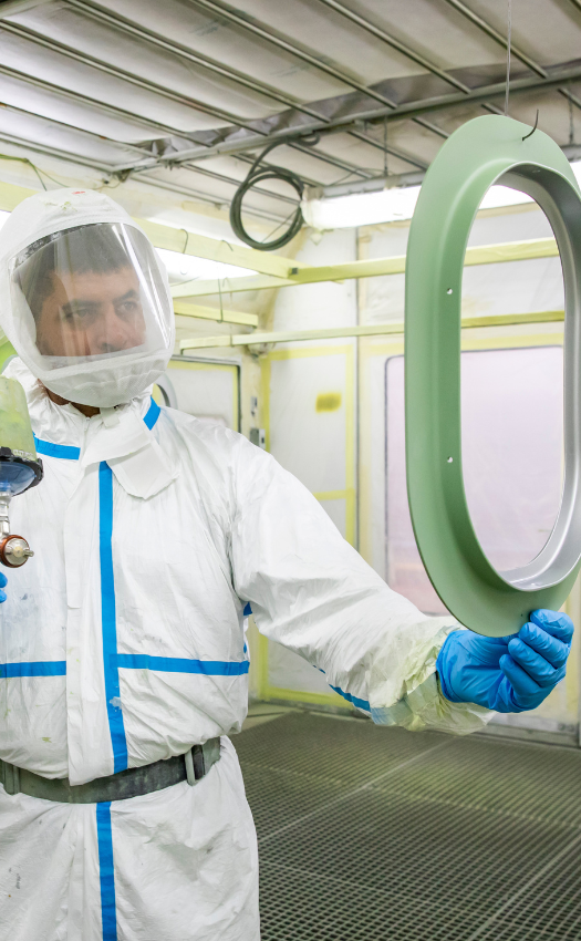 Nos cabines de peinture de grande capacité permettent l’application de primaires, topcoats et finitions techniques. Ces revêtements répondent aux doubles enjeux de protection et d’esthétique, sur des pièces métalliques comme composites.